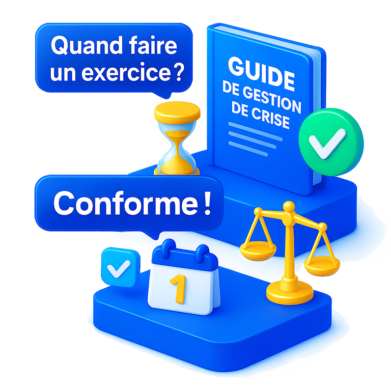 Une première fois pour construire votre guide de gestion de crise, puis un entraînement par an pour rester prêts et conformes !