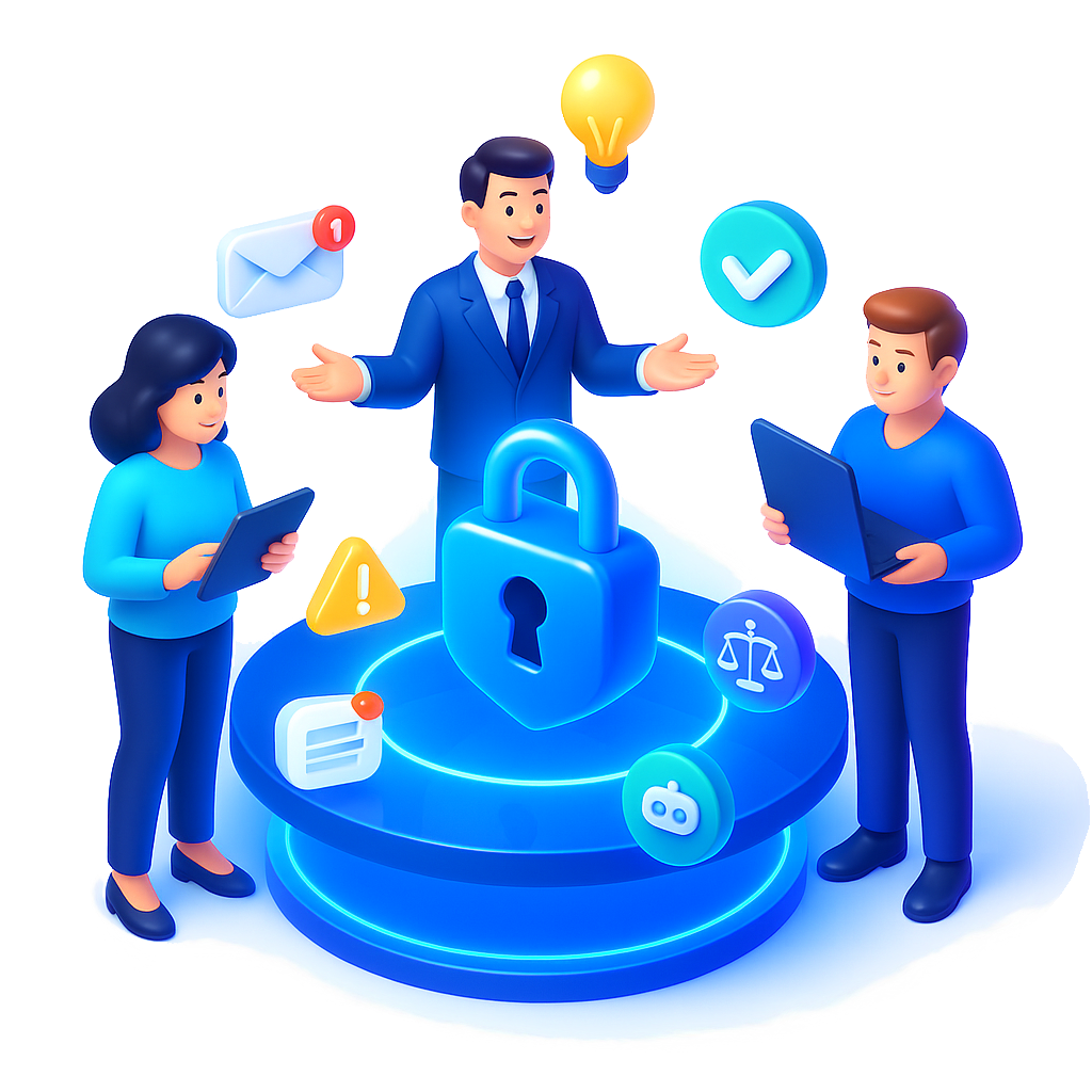 Possibilité de coupler les sensibilisations avec des prestations de mise en situation réelle : campagne de phishing avant/après le module, exercice de crise, mise en place de charte d’utilisation d’outils IA…