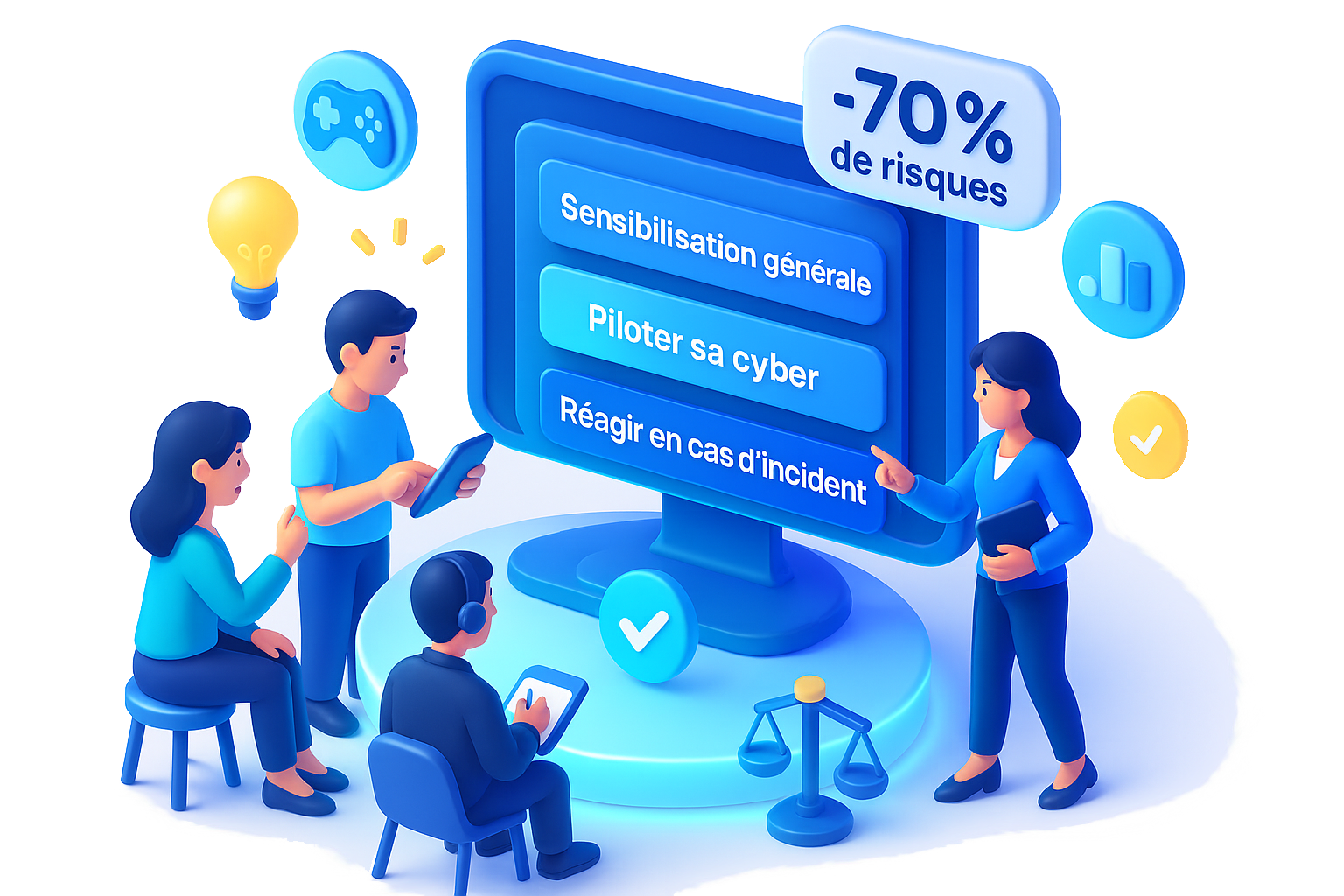 Chez HeyCyber, on a décidé d’en finir avec les formations soporifiques. Nos programmes sont ludiques, interactifs et adaptés à chaque public :